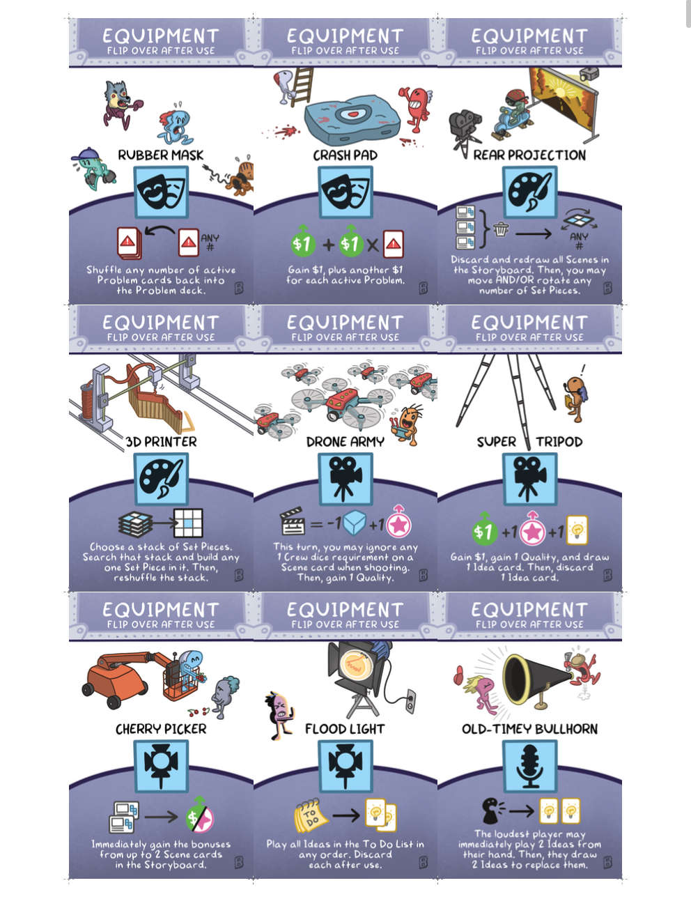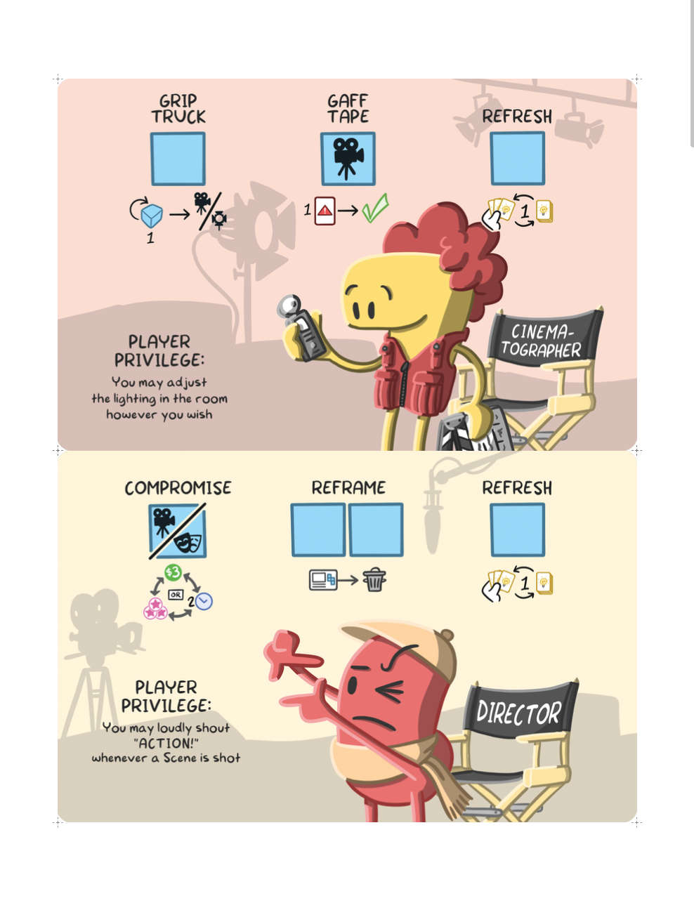 Print and assemble your own copy of both Roll Camera! and the B-Movie Expansion on the cheap with these downloadable printable playable files! Formatted by the king of PNP himself, Martin Gonzalvez of the Print and Play Hideaway.