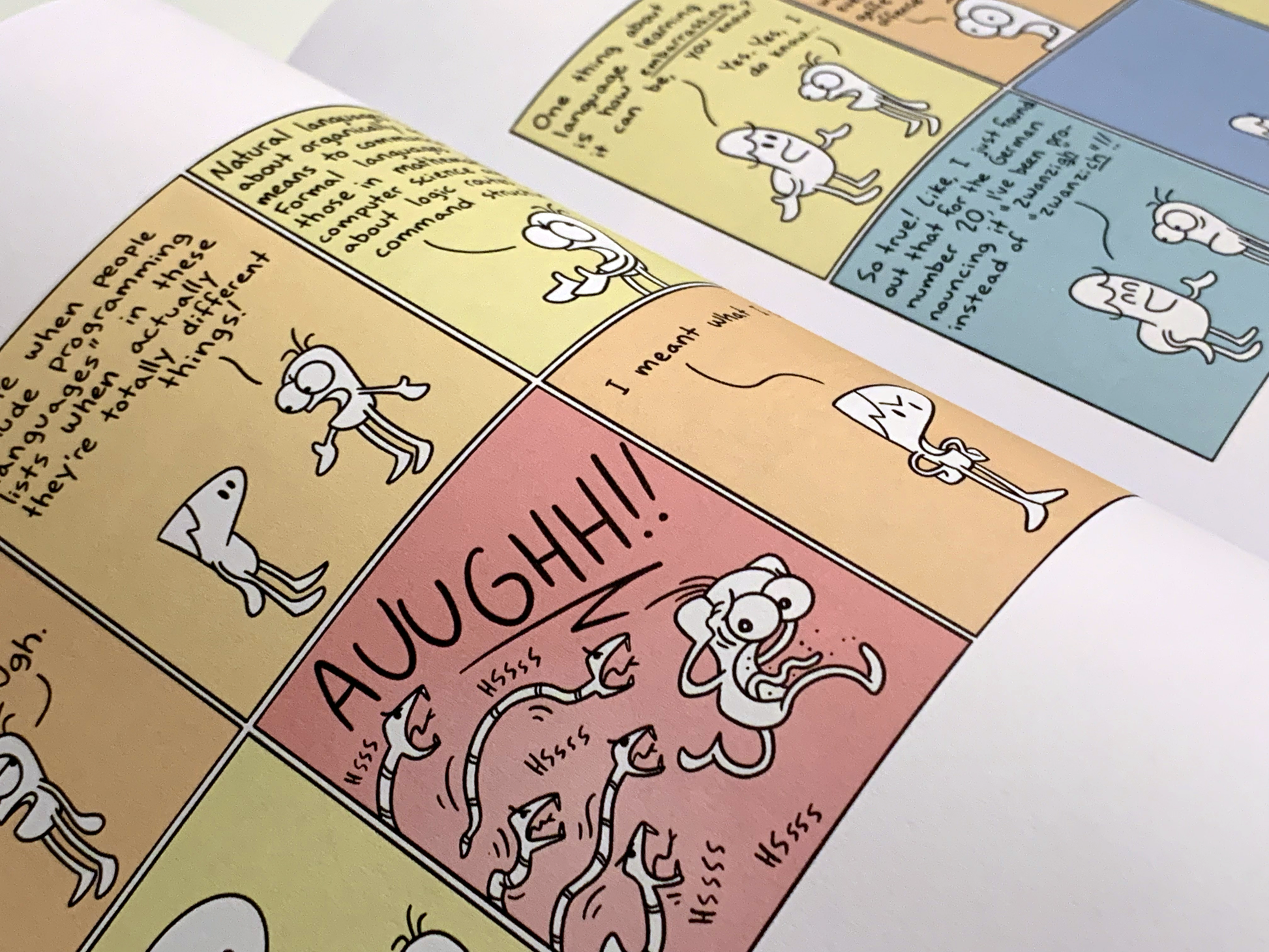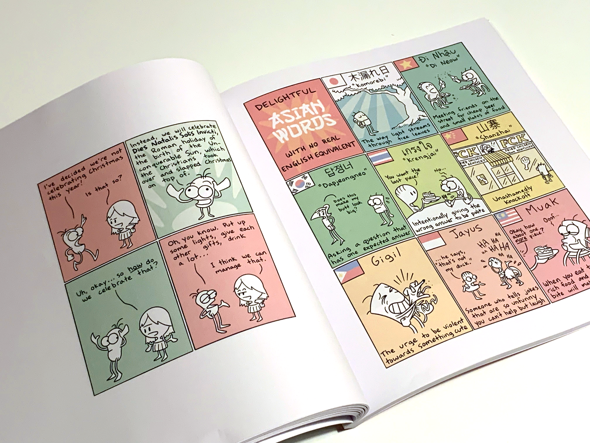 This jam-packed, joy-laden, pink-hued tome features one hundred and fifty-two of the humorousist, funnymost, much delightingest ITCHY FEET comics from 2018 to 2021, peeled out of the internet's cold fingers and lovingly lathed onto actual paper for your other four senses to enjoy. All your travel- and language-related favorites are here, including the exclusive bonus panels otherwise viewable only by Patreon supporters and Tinyview subscribers. Hooray!