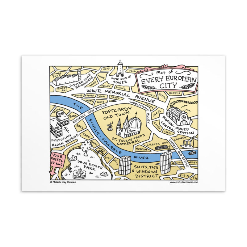 Now you can send the same postcard from literally anywhere in Europe! Based on my Map of Every European City comic.