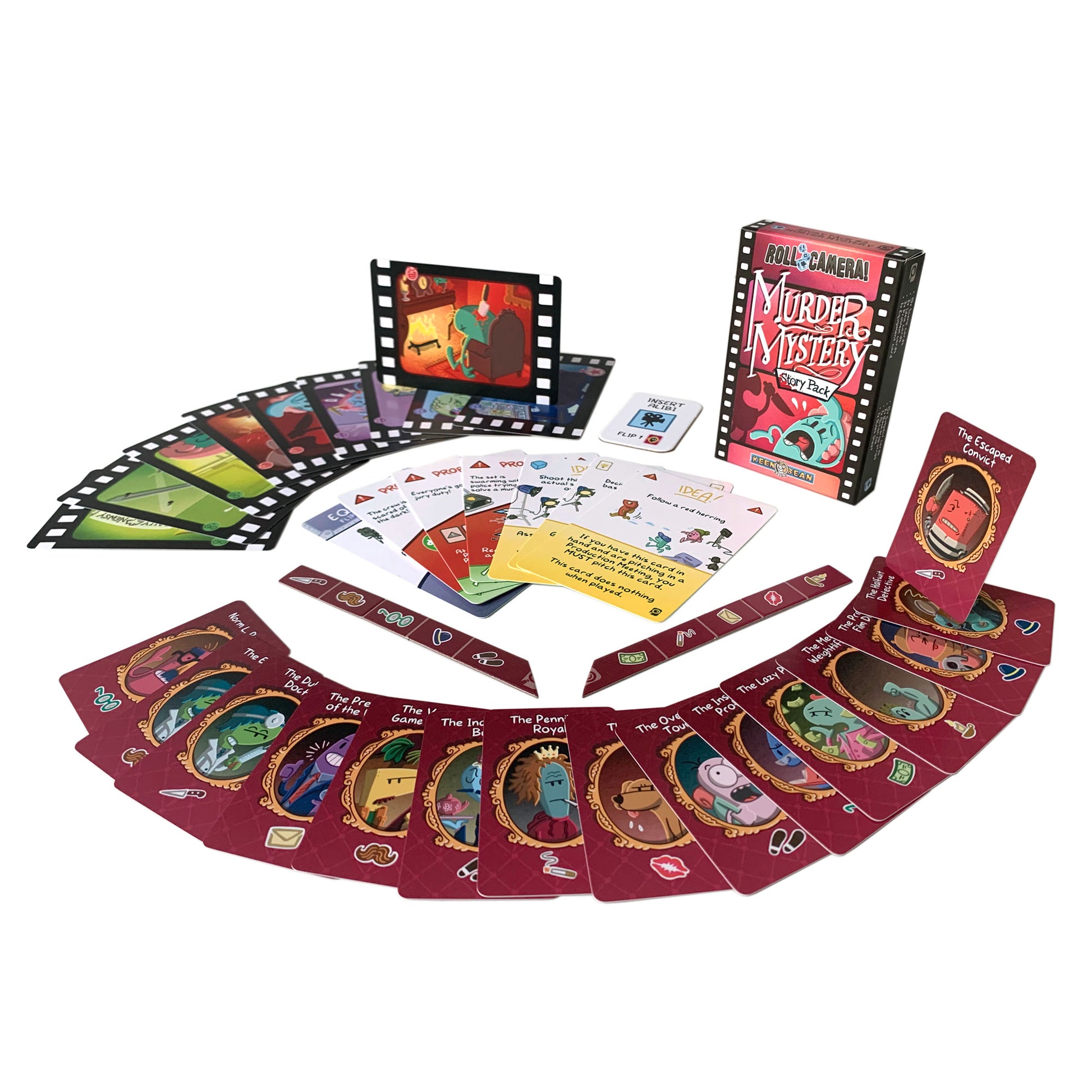 The Murder Mystery Story Pack contains 32 brand new cards (10x whodunnit-themed Scenes, 3x Idea cards, 3x Problem cards, 1x Equipment card, 15x Suspect cards, all filled with new original artwork), as well as a new main board action tile and 2x "backdrop strips" for the new Suspect mechanism.